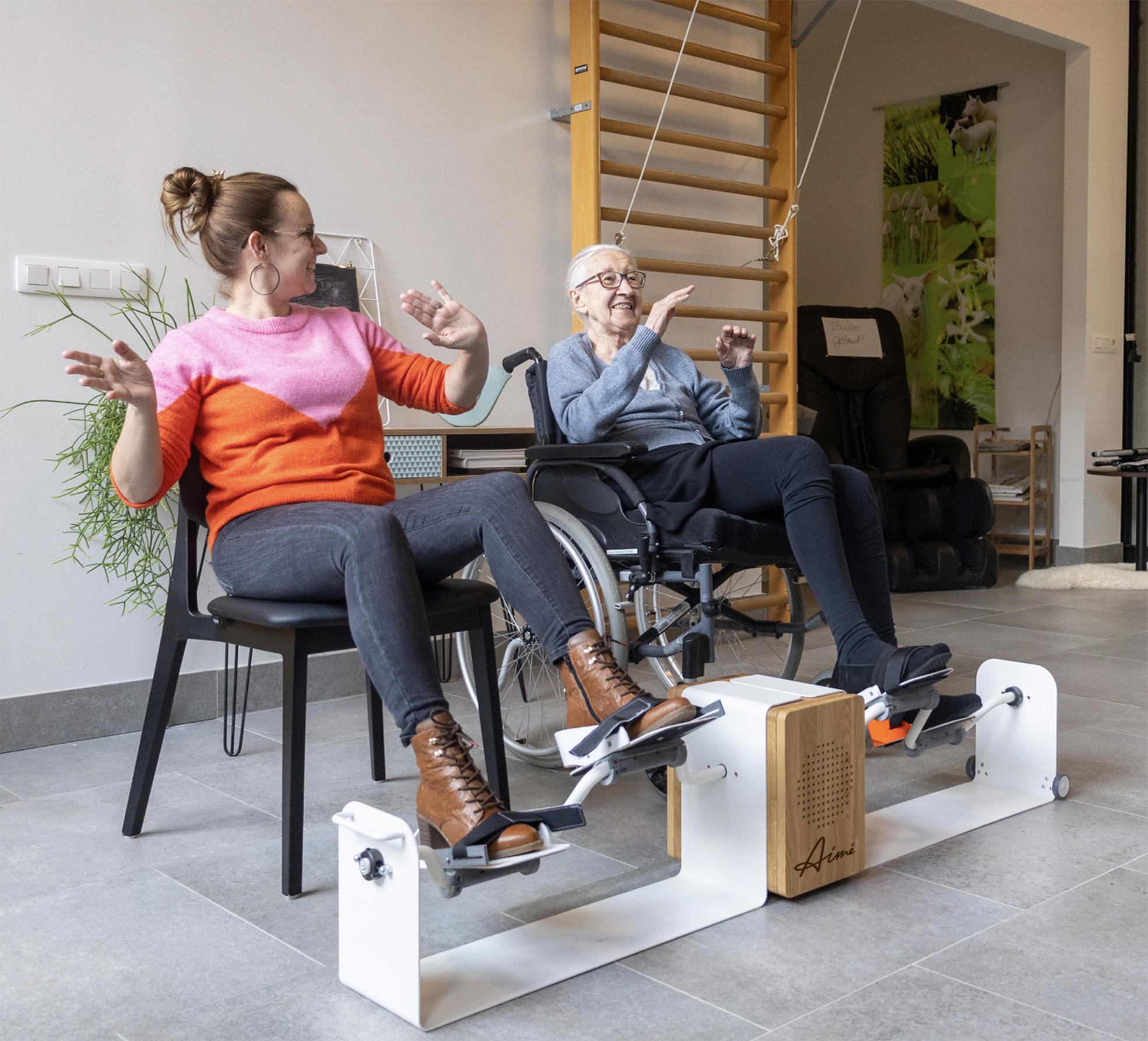 Het is zalig om connectie te maken met mijn Oma. Ze is vaak afwezig maar samen bewegen met Aimé bezorgt on mooie en leuke momenten.